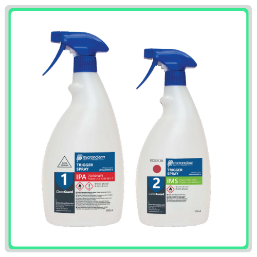 Ready to use trigger-bottles or bulk packs, we have a range of cleaning and disinfecting alcohols such as Isopropryl Alochol, Industrial Methylated Spirits. IPA and IMS available, all blended with 30% Water for Injection, gamma sterilised and double-bagged.