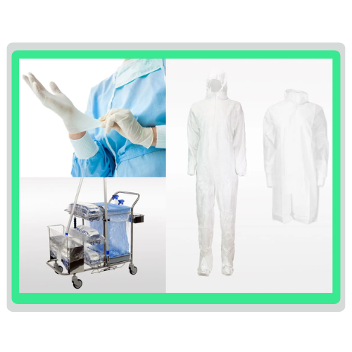 Gloves, disposable gowns and coveralls, hair nets, mops & hardware, tackymats, cleaning equipment, isopropyl alcohol, disinfectants and more.